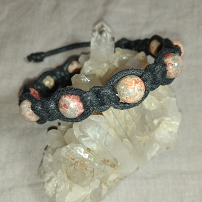 Petite histoire... de la famille des quartz microcristallins, il est ainsi nommé à cause de ses tâches circulaires atypiques, aux couleurs chaudes, formées par des inclusions de différents minéraux (quartz, biotite, feldspath) lors d'un très long processus de sédimentation. On le trouve majoritairement au Brésil et à Madagascar. Certaines légendes racontent que le jaspe léopard favoriserait l'harmonie entre les hommes et les animaux.