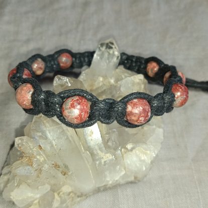 Pierres gemmes naturelles, perles rondes 8 mm, lacet de coton ciré noir, longueur +/- 19cm, pièce unique (cliquez sur la photo pour plus de détails).