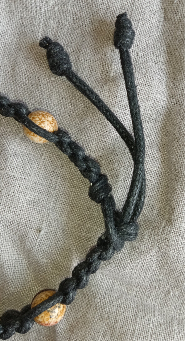 Pierres gemmes naturelles, perles rondes 8 mm, lacet de coton ciré noir, longueur +/- 20cm, pièce unique (cliquez sur la photo pour plus de détails).