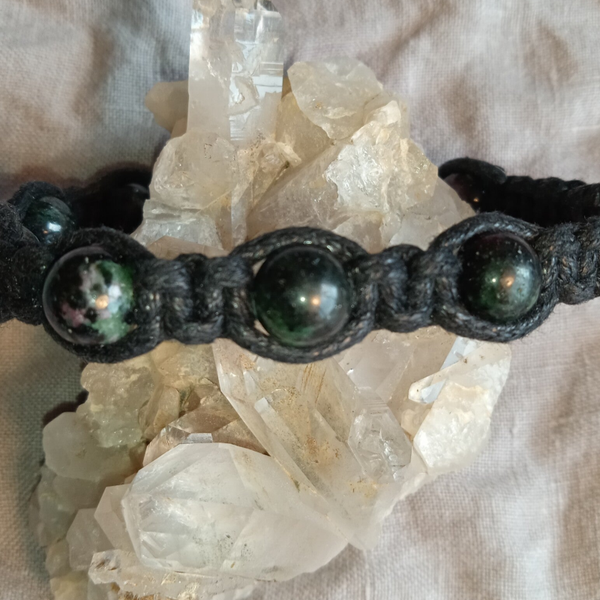 Bracelet Zoïsite-Rubis ou Anyolite ZRA-172025-01 perles rondes 8 mm