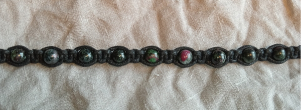 Pierres gemmes naturelles, perles rondes 8 mm, lacet de coton ciré noir, longueur +/- 20cm, pièce unique (cliquez sur la photo pour plus de détails).