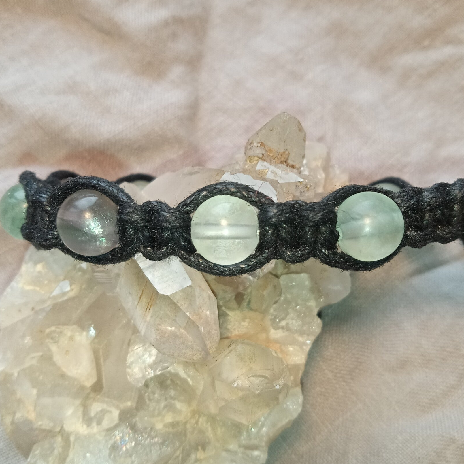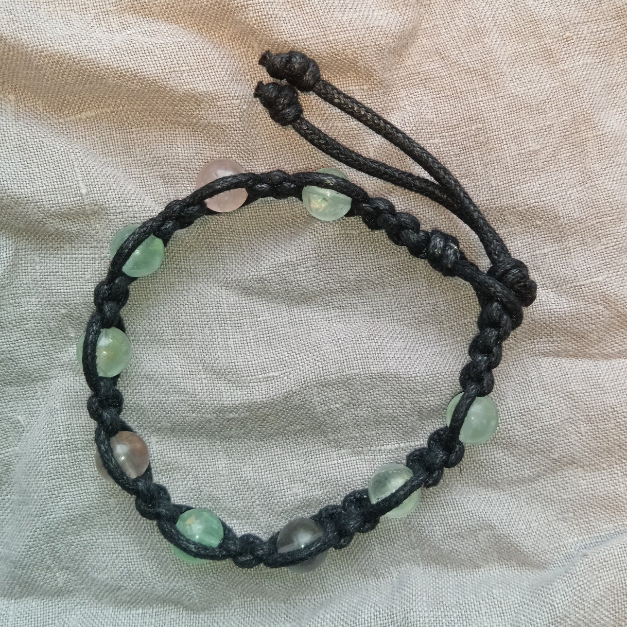 Pierres gemmes naturelles, perles rondes 8 mm, lacet de coton ciré noir, longueur +/- 19cm, pièce unique (cliquez sur la photo pour plus de détails).
