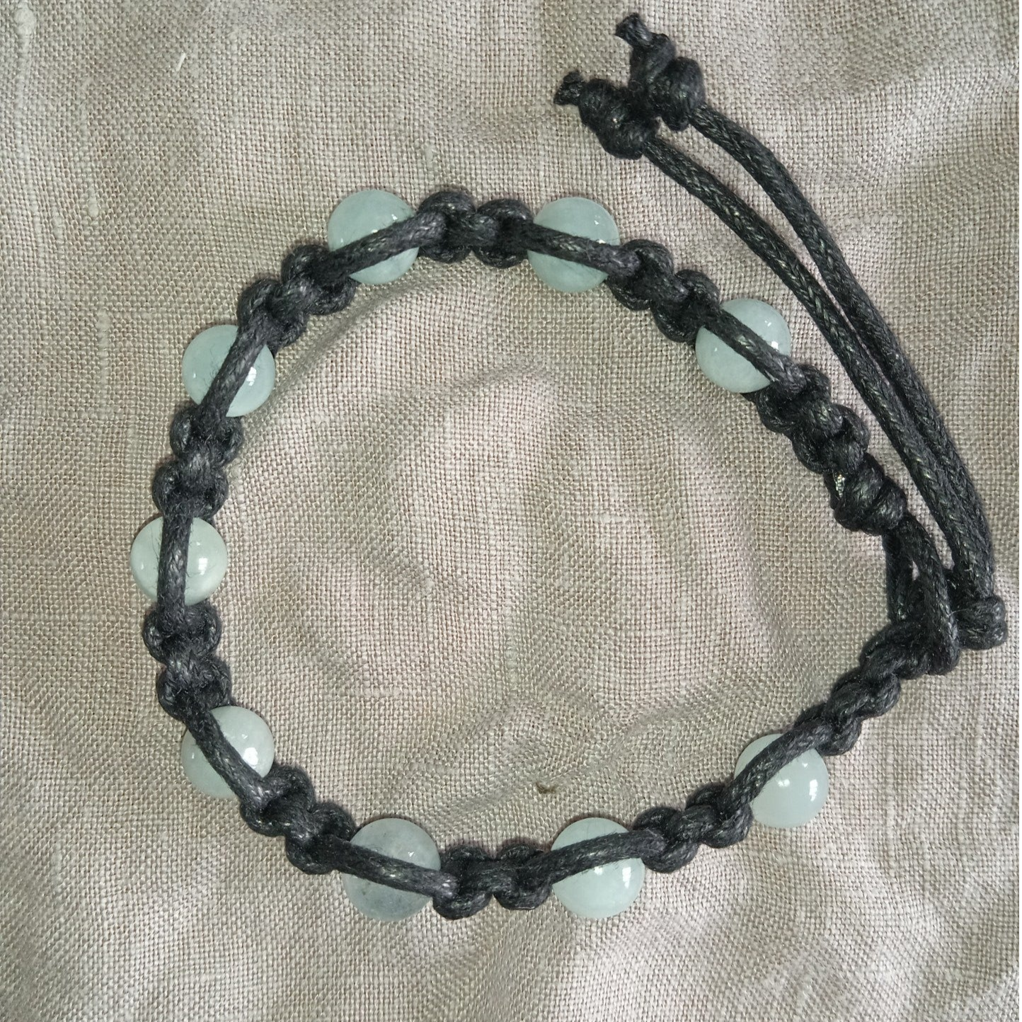 Pierres gemmes naturelles, perles rondes 8 mm, lacet de coton ciré noir, longueur +/- 19cm, pièce unique (cliquez sur la photo pour plus de détails).