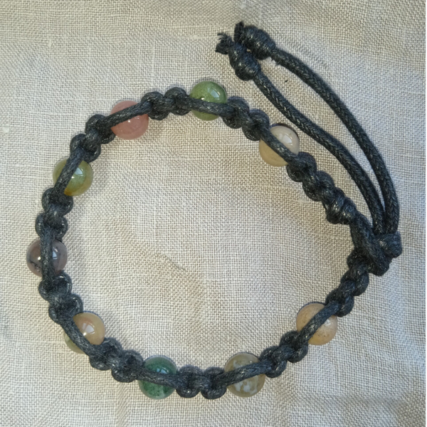 Pierres gemmes naturelles, perles rondes 8 mm, lacet de coton ciré noir, longueur +/- 19cm, pièce unique (cliquez sur la photo pour plus de détails).