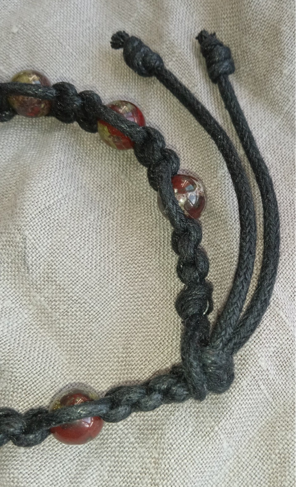 Pierres gemmes naturelles, perles rondes 8 mm, lacet de coton ciré noir, longueur +/- 19cm, pièce unique (cliquez sur la photo pour plus de détails).