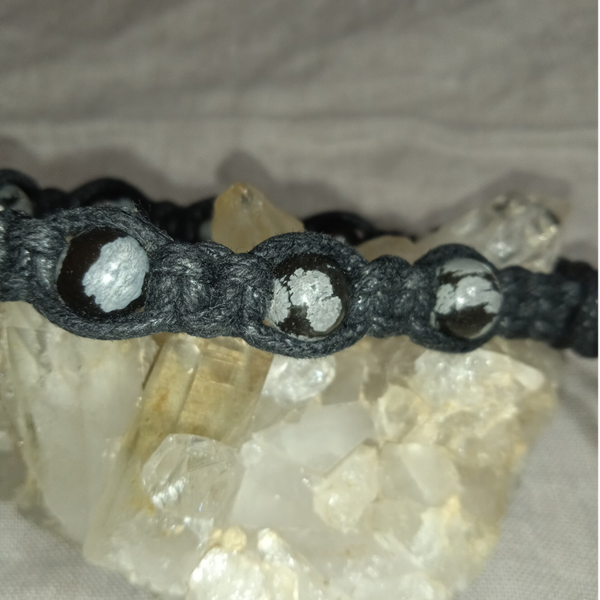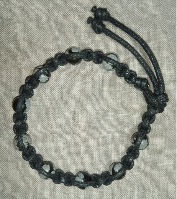Bracelet Obsidienne Neigeuse ref OBN112024-2 perles rondes 8 mm