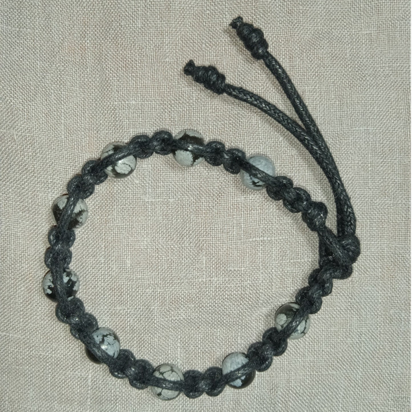 Bracelet Obsidienne Neigeuse ref OBN112024-3 perles rondes 8 mm
