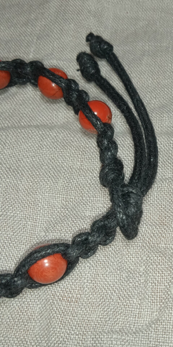 Pierres gemmes naturelles, perles rondes 8 mm, lacet de coton ciré noir, longueur +/- 19cm, pièce unique (cliquez sur la photo pour plus de détails).