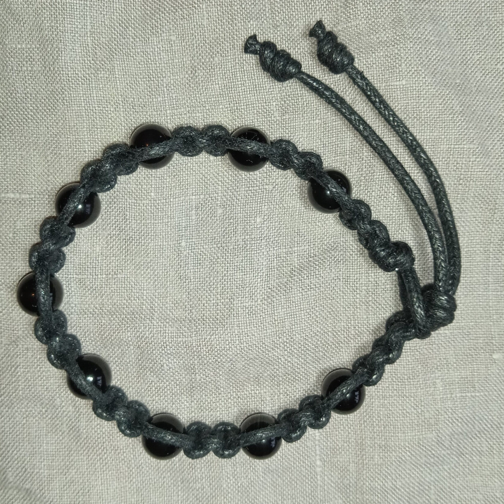 Pierres gemmes naturelles, perles rondes 8 mm, lacet de coton ciré noir, longueur +/- 20cm, pièce unique (cliquez sur la photo pour plus de détails).