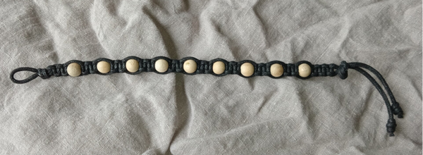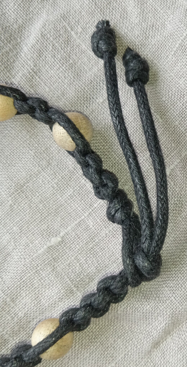 Perles rondes 8 mm, bois naturel, brut, lacet de coton ciré noir, longueur +/- 19cm, pièce unique (cliquez sur la photo pour plus de détails).