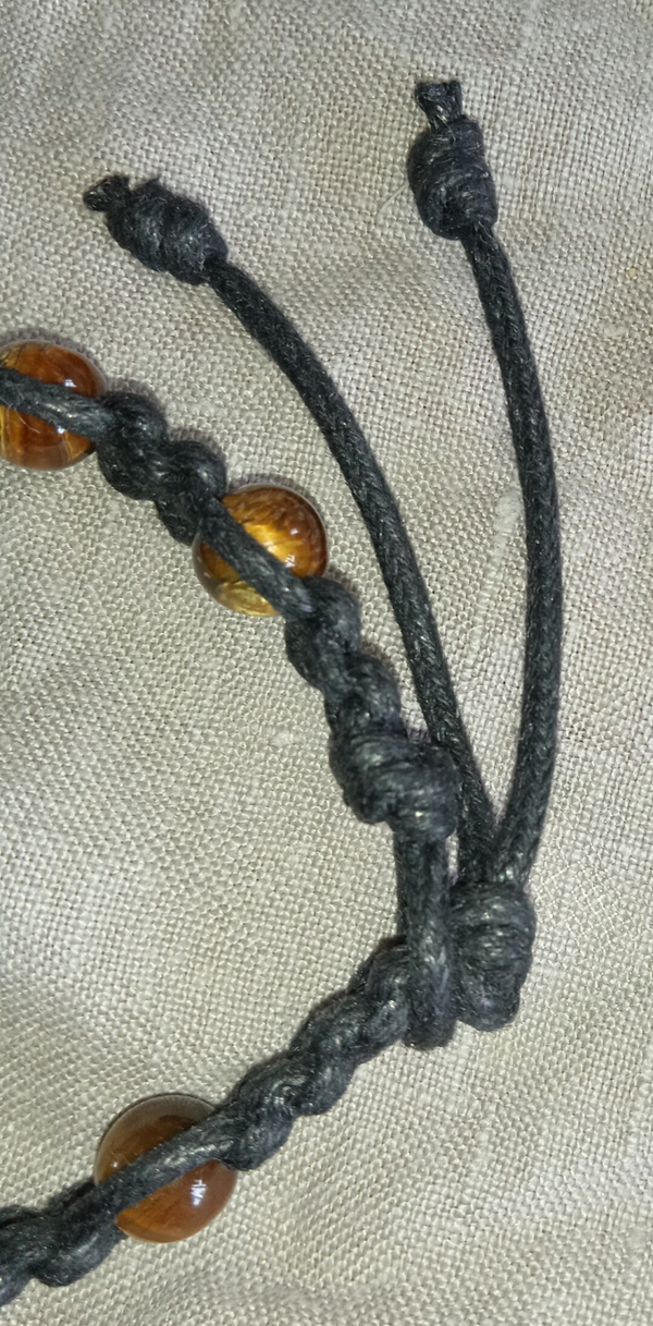 Pierres gemmes naturelles, perles rondes 8 mm, lacet de coton ciré noir, longueur +/- 19cm, pièce unique (cliquez sur la photo pour plus de détails).