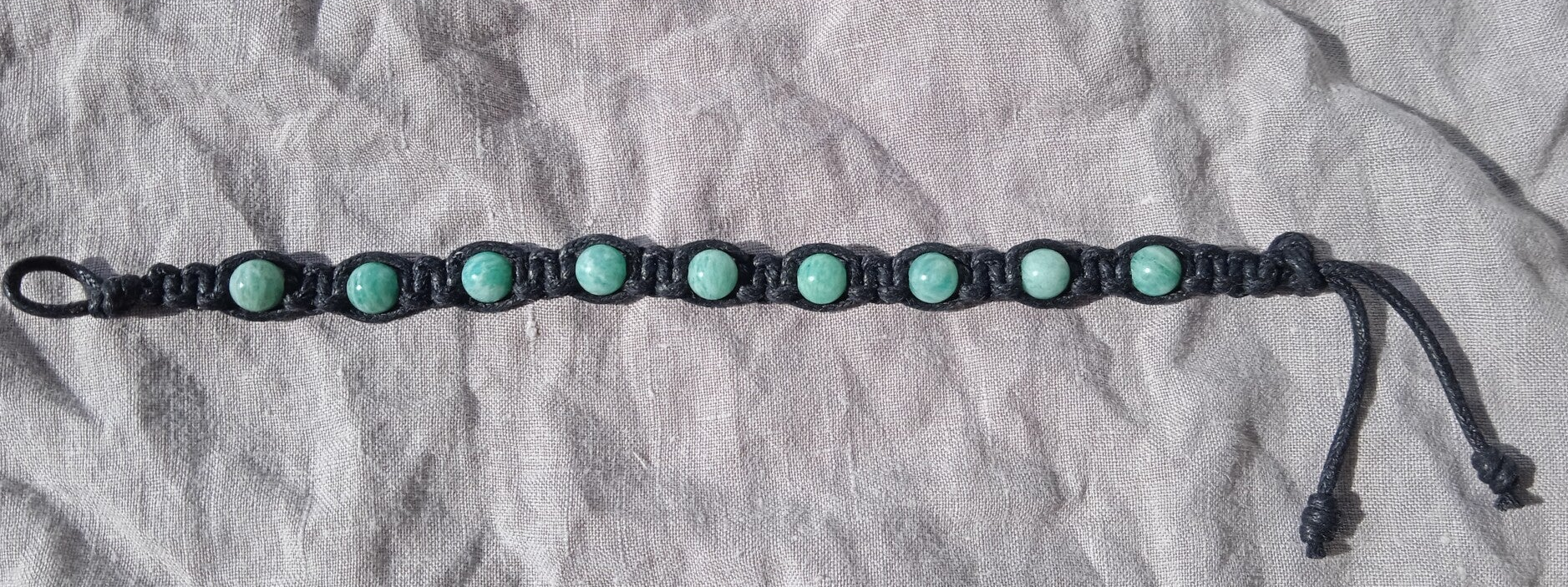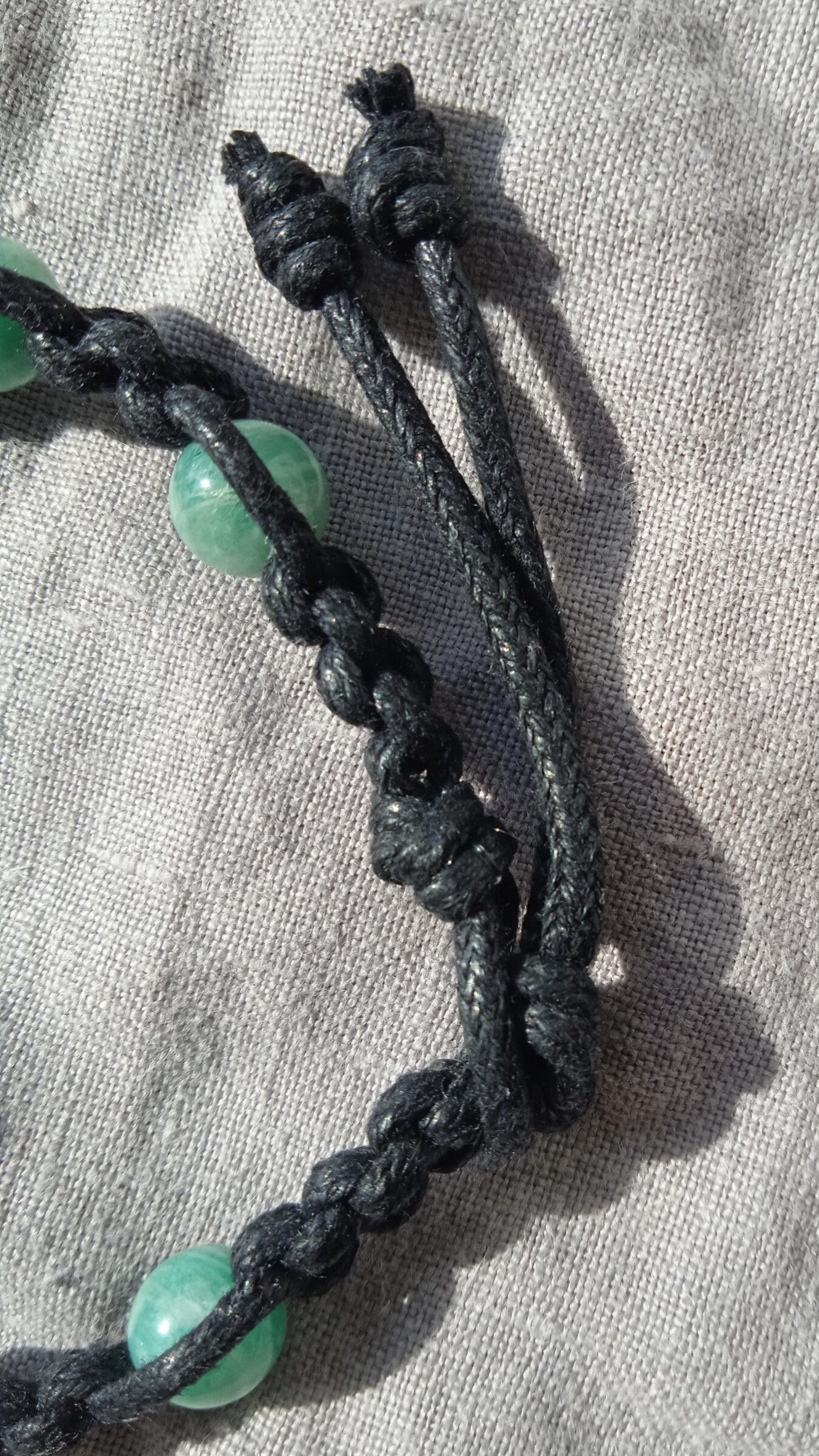 Pierres gemmes naturelles, perles rondes 8 mm, lacet de coton ciré noir, longueur +/- 19cm, pièce unique (cliquez sur la photo pour plus de détails).