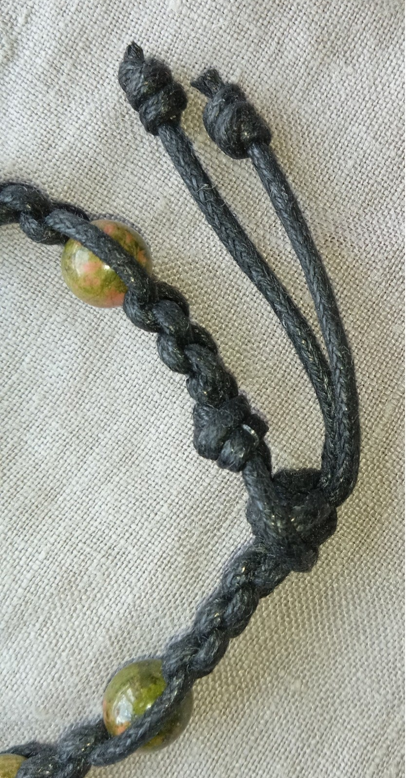Pierres gemmes naturelles, perles rondes 8 mm, lacet de coton ciré noir, longueur +/- 19cm, pièce unique (cliquez sur la photo pour plus de détails).