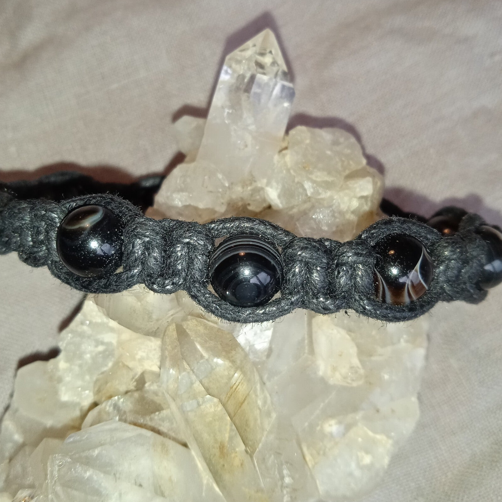 Pierres gemmes naturelles, perles rondes 8 mm, lacet de coton ciré noir, longueur +/- 19cm, pièce unique (cliquez sur la photo pour plus de détails).