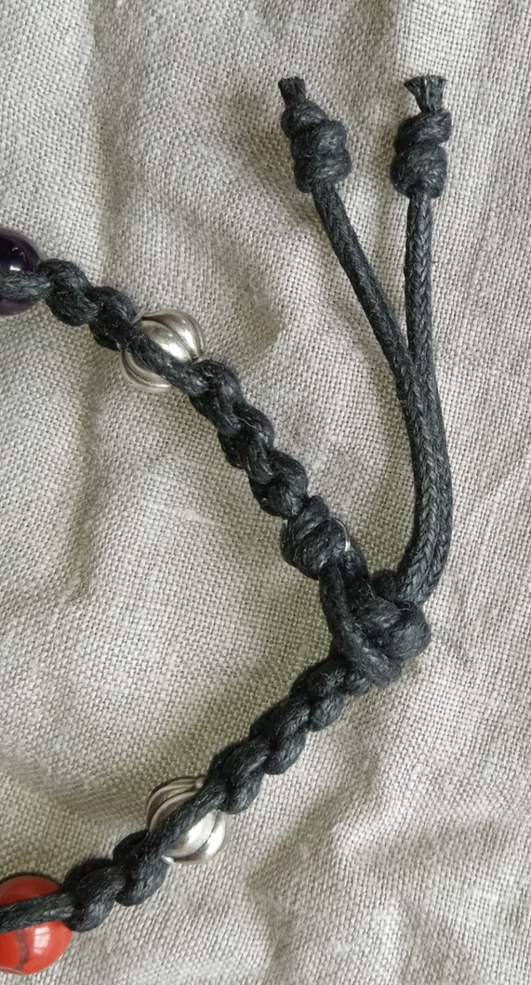 Pierres gemmes naturelles, perles rondes 8 mm, lacet de coton ciré noir, longueur +/- 20 cm, pièce unique (cliquez sur la photo pour plus de détails).